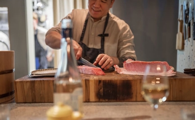 An omakase-style restaurant, offering an eight-course tasting menu that fuses Japanese tradition with global culinary artistry. The cuisine draws influences from South America, Asia, and Europe, utilizing modern techniques and luxury ingredients like Oscietra caviar and Périgord truffles.