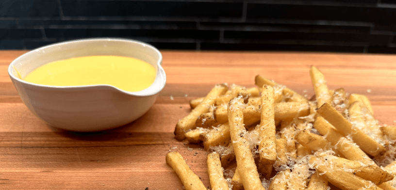 This cheddar dip employs a blend of culinary science and straightforward cooking, utilizing sodium citrate for a silky-smooth...